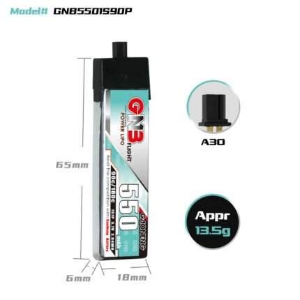 Gaoneng GNB 1S 550MAH 90C 3.7V Li-Po Battery for Whoop Micro – A30 Plastic Head