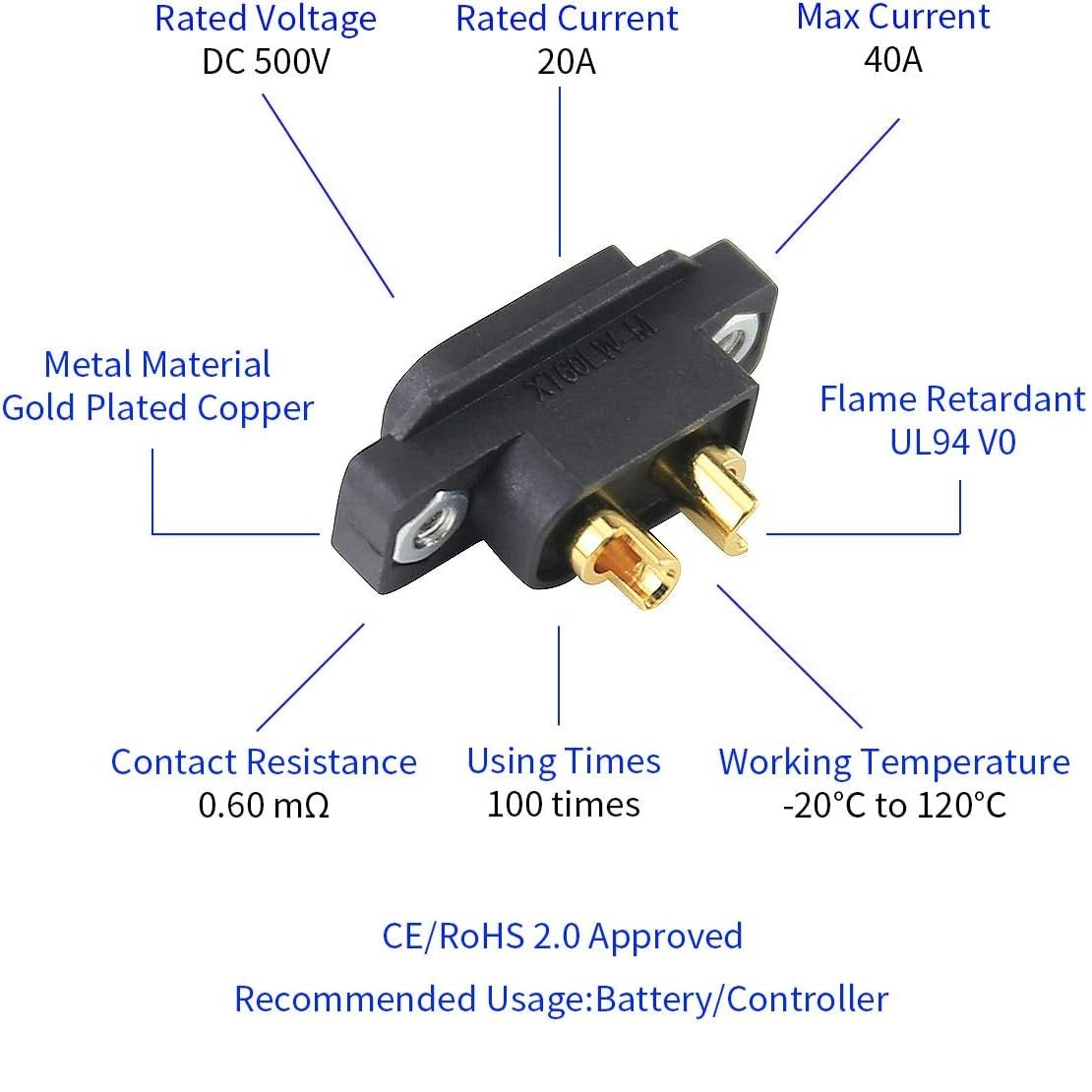 - Compatible with all XT60 series female headers