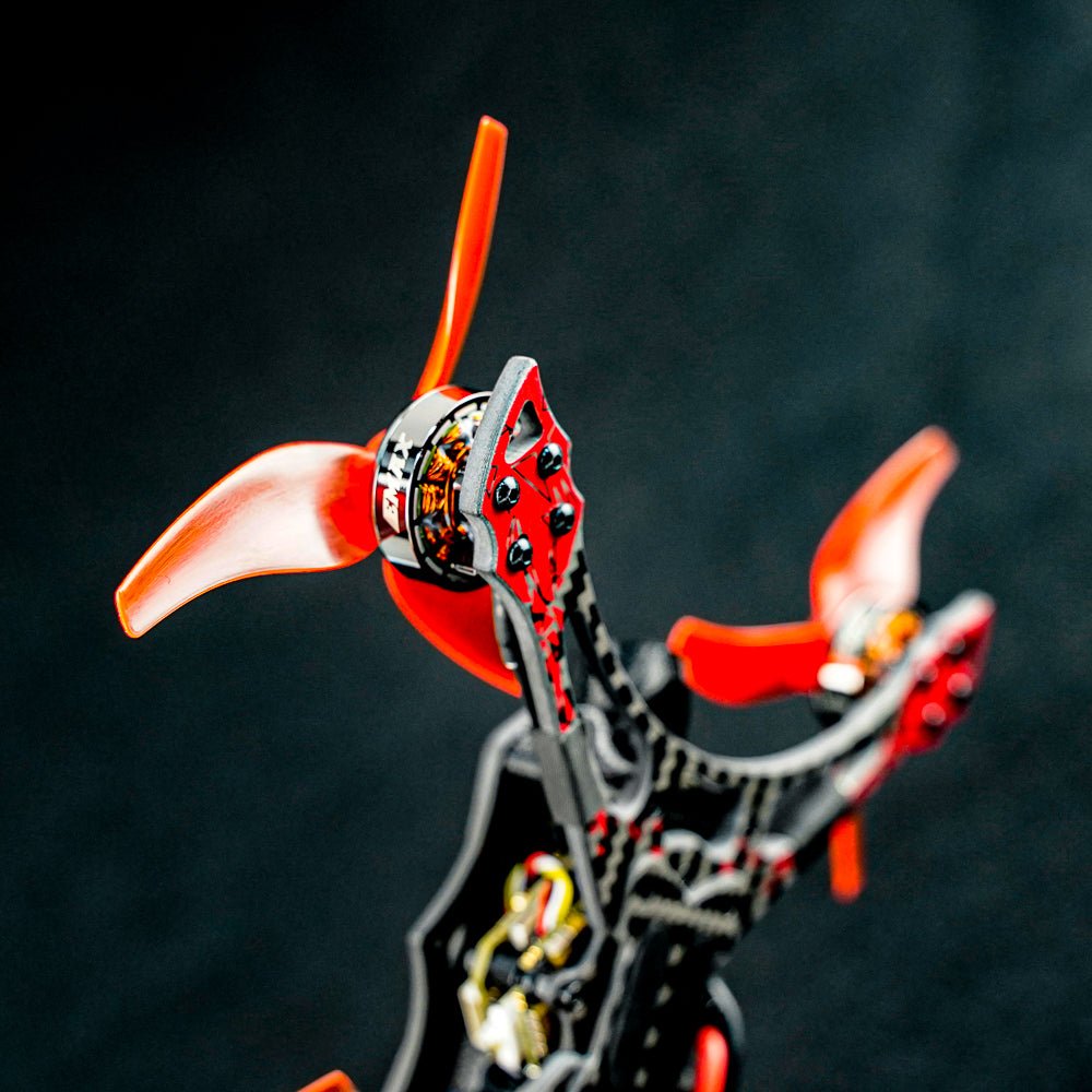 Included in the redesigned powertrain are brand new Avia propellers in 3.5″ and 5″ flavors which focus the most on flight time and performance. With a nonlinear torque curve designed to match the needs of racing pilots, control and throttle response are achieved making the aerodynamics of the Hawk Apex the top of its class.