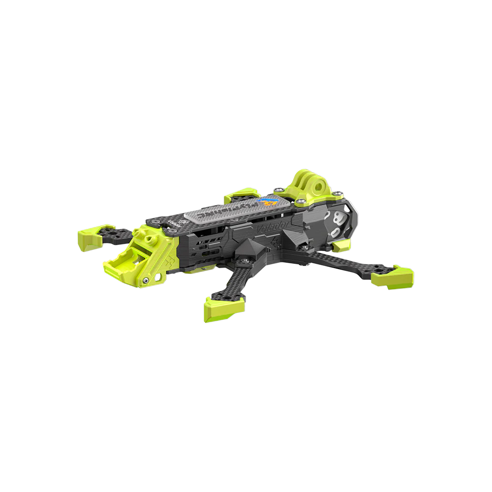 The all-new Flying Fish Volador VD4, weighing 127g, features a DC layout, providing unobstructed flight view without propellers in view. The newly designed CNC side plates paired with a silicone-damped camera mount perfectly match the O4 VTX, completely eliminating jello effect and delivering a smooth FPV experience.