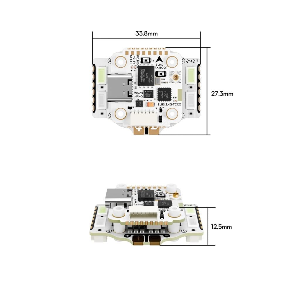 The Flywoo F405 NANO has been completely upgraded! We have further minimized and integrated the FC layout based on the original design. The new Flywoo GOKU GN405 Nano FC V3 w ELRS 2.4g is compact and features a USB-C universal port that is compatible with current mainstream data cables. It also supports the DJI O3 interface, allowing compatibility with high-quality digital transmission modules. Additionally, it has a complete set of six UART ports. Importantly, this flight controller is equipped with a TCXO ELRS high-precision receiver, making it an ideal solution for space-saving in micro drones. This flight controller is compatible with both QUAD and HEX drones, and users can switch between different ESC models. The latest three ESC models include: the 20A (QUAD) plug-and-play ESC, the 20A (HEX) plug-and-play ESC, and the high-performance 35A (QUAD) ESC. These options meet your compatibility needs for different drones, ensuring you have fun during your flights!