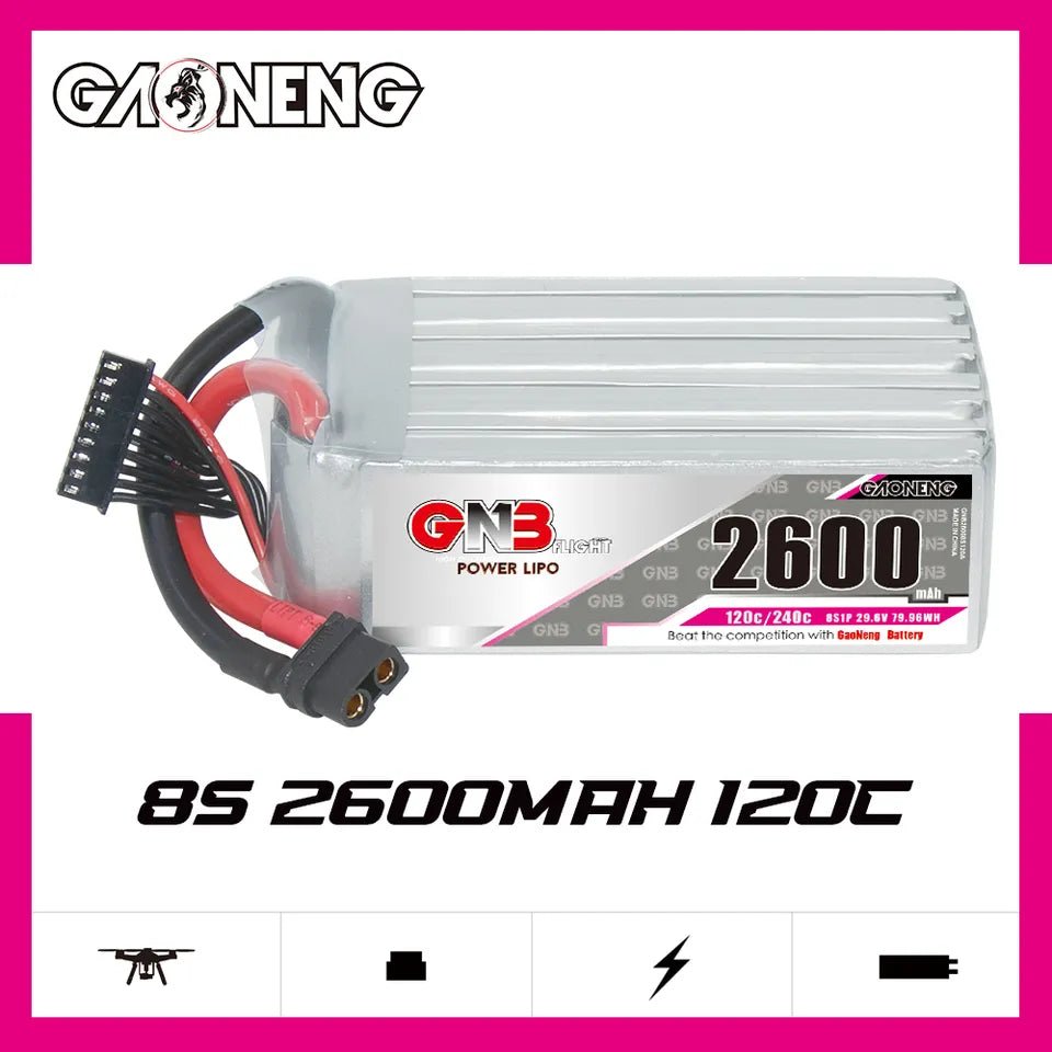 • 1 x Gaoneng GNB 2600mAh 29.6V 8S 120C Lipo Battery – XT60