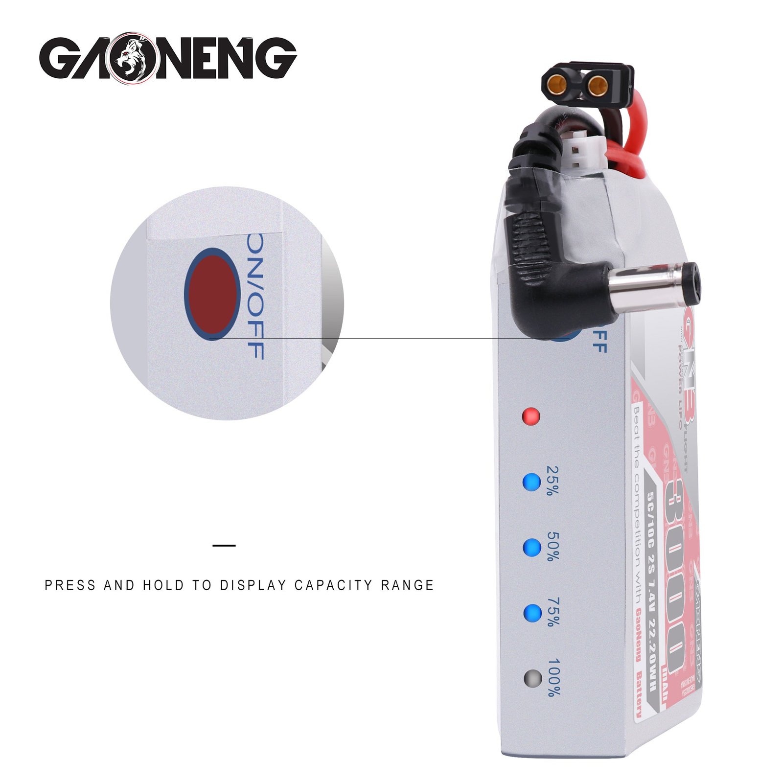 Gaoneng GNB 3000MAH 2S 5C Goggles Lipo Battery Power Indicator
