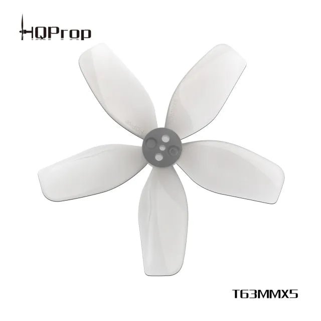 HQProp Durable DT63MMX5 63mm Cinewhoop Props are made from high-quality poly carbonate material, and feature a 63mm diameter, 1.5 pitch, and 10.1mm hub diameter. With 5 blades and a lightweight 1.53g weight, these props provide reliable performance for your Cinewhoop.