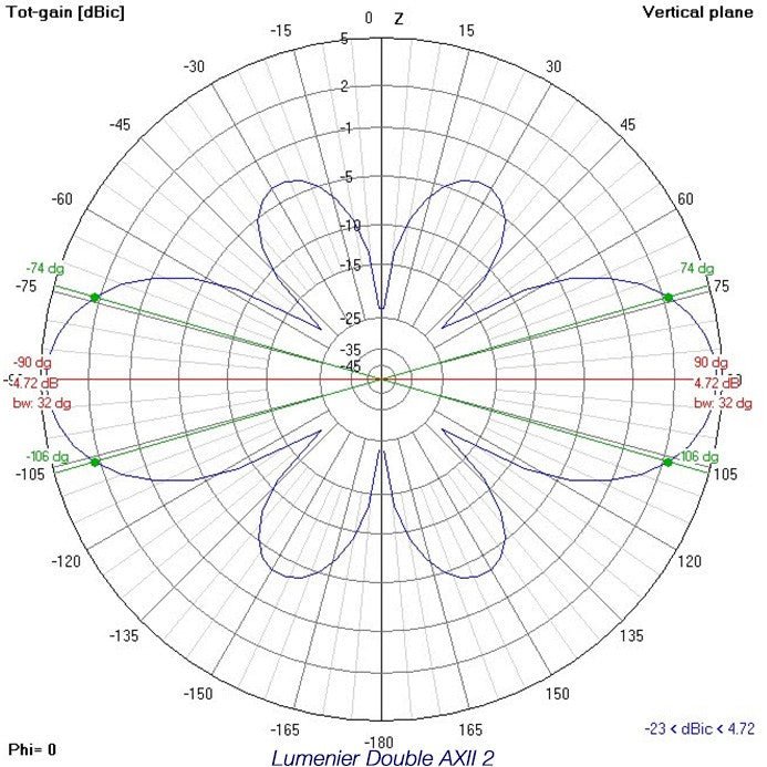 Precision engineering has given this antenna a virtually perfect 1.0 Axial ratio resulting in a true circularity. On top of that, the Double AXII 2 has an amazing max gain of 4.7dBiC, a true upgrade over the original AXII.