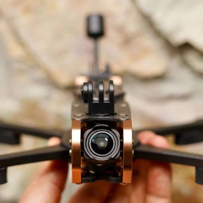 The new FPV camera mounting solution offers excellent camera protection and support for various cameras through customizable carbon plates. The frame includes plates with damped mounts tested and optimized for the O3 camera and plates with mounts for a range of other camera options. If you want to create your own, the M2 mount points on the aluminum guards easily allow for custom mounts. Your imagination is the limit!