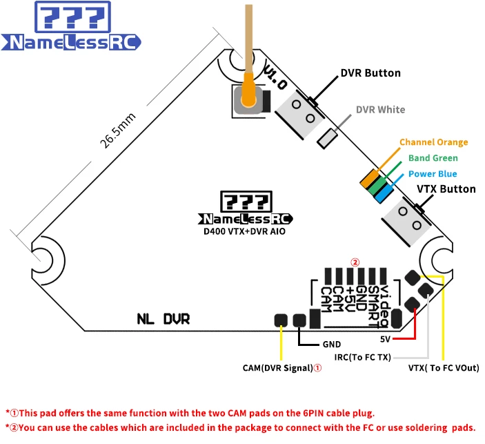 NAMELESSRC D400 VTX+DVR AIO 25-400MW 720P RECORDING
