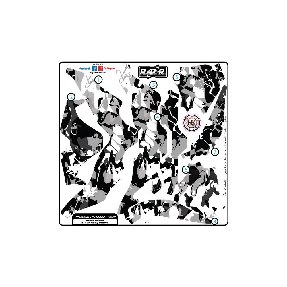 NXGraphics DJI FPV Goggle Wrap – Camo (Black,Grey,White) (Includes Eye Plate Sticker Wrap)