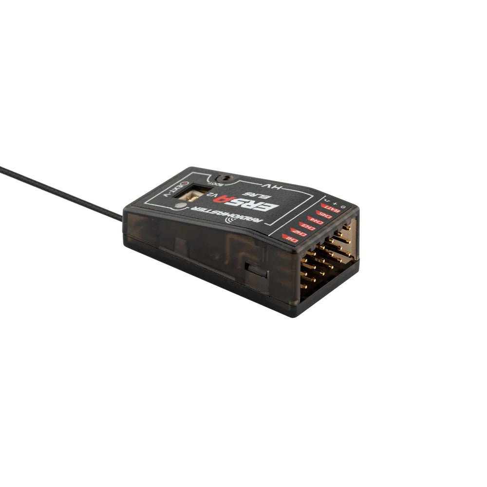 The ER5A V2 ELRS receiver can drive up to 5 servos and has built-in receiver voltage telemetry and battery telemetry with the ability to automatically detect which voltage input to use. It is designed for aircraft applications.