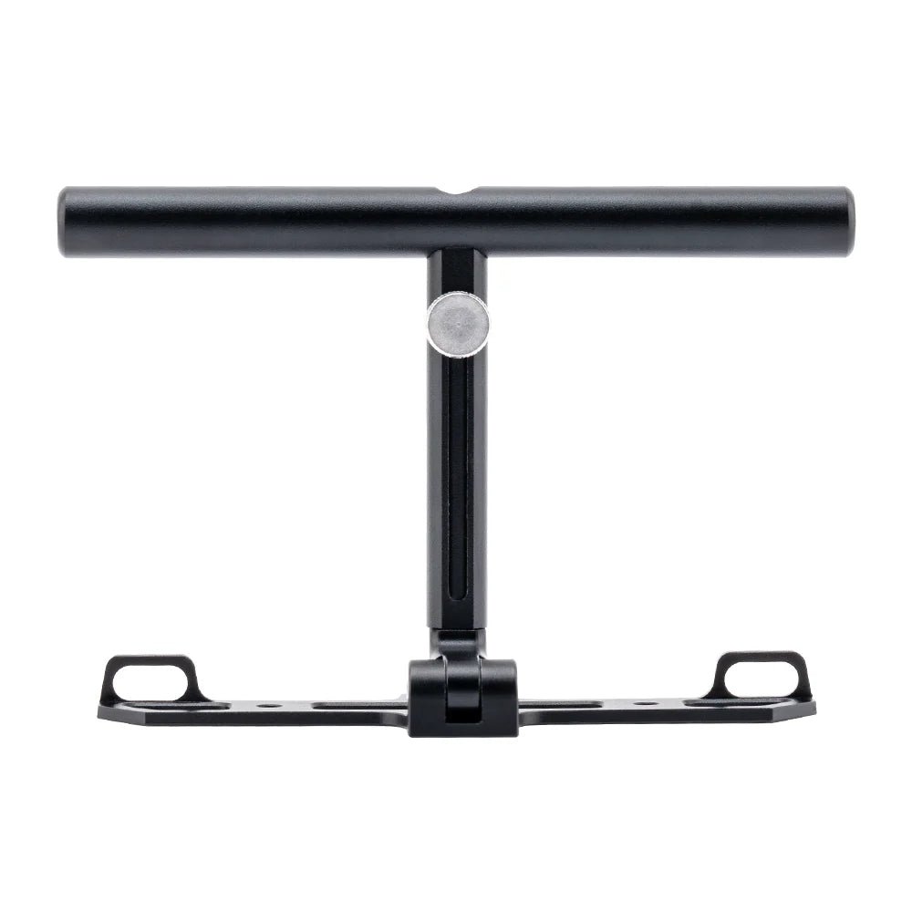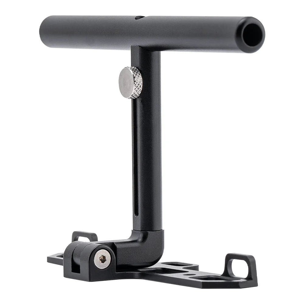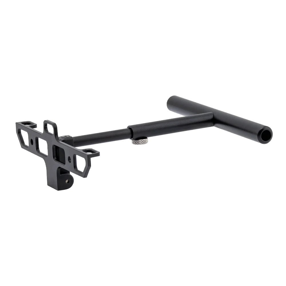 The aluminum Multi-stand for the GX12 radio controller provides stable support against your abdomen, enhancing control and comfort. Featuring dual neck strap connection points, it positions the radio comfortably. When folded, the Multi-stand doubles as a convenient tabletop stand.