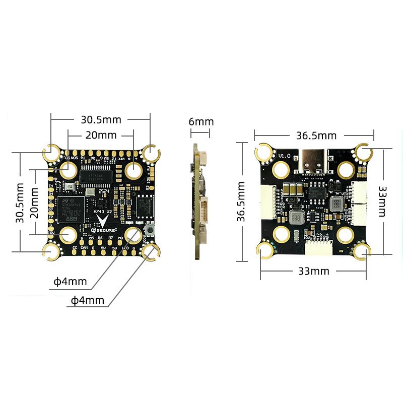 Equipped with a high-performance STM32H743 processor, the Sequre H743 Flight Controller offers up to 480MHz operating frequency for rapid control response. Utilizing the ICM42688P gyroscope, this flight controller enables precise gesture sensing and improved system reliability.