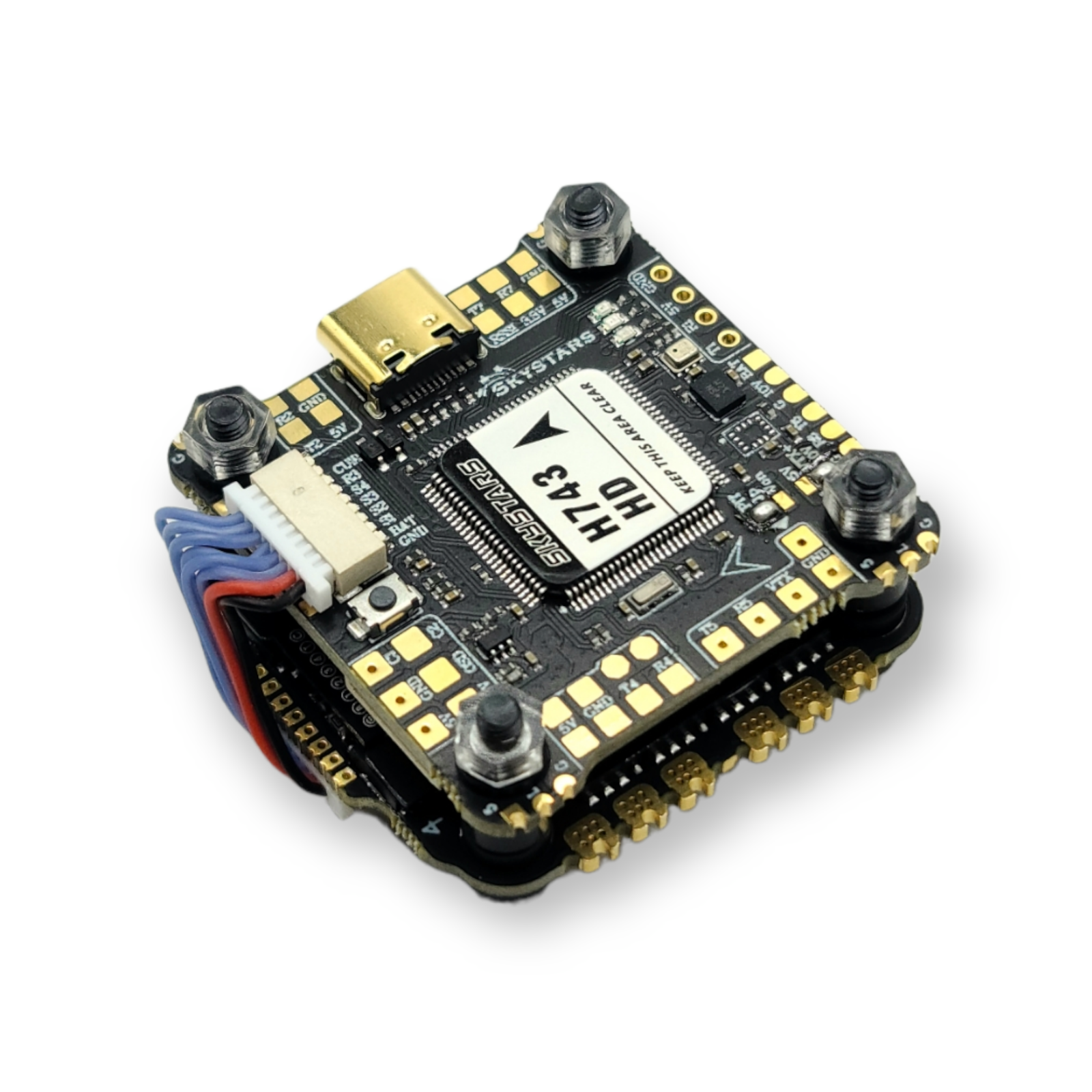 Skystars RC flagship H743 Flight Controller with X8 support, OSD, BMI270 gyro, BMP280 barometer, 16M blackbox, 8 UARTS, and more. The powerful MCU running at 480MHz should future-proof any new firmware updates coming in the next few years.